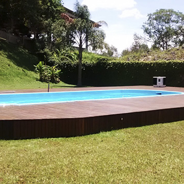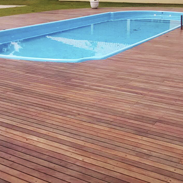 Ideal para áreas externas, o deck valoriza ambientes como jardins, piscinas, varandas, áreas gourmet e espaços comerciais, trazendo conforto térmico e sofisticação ao projeto.
